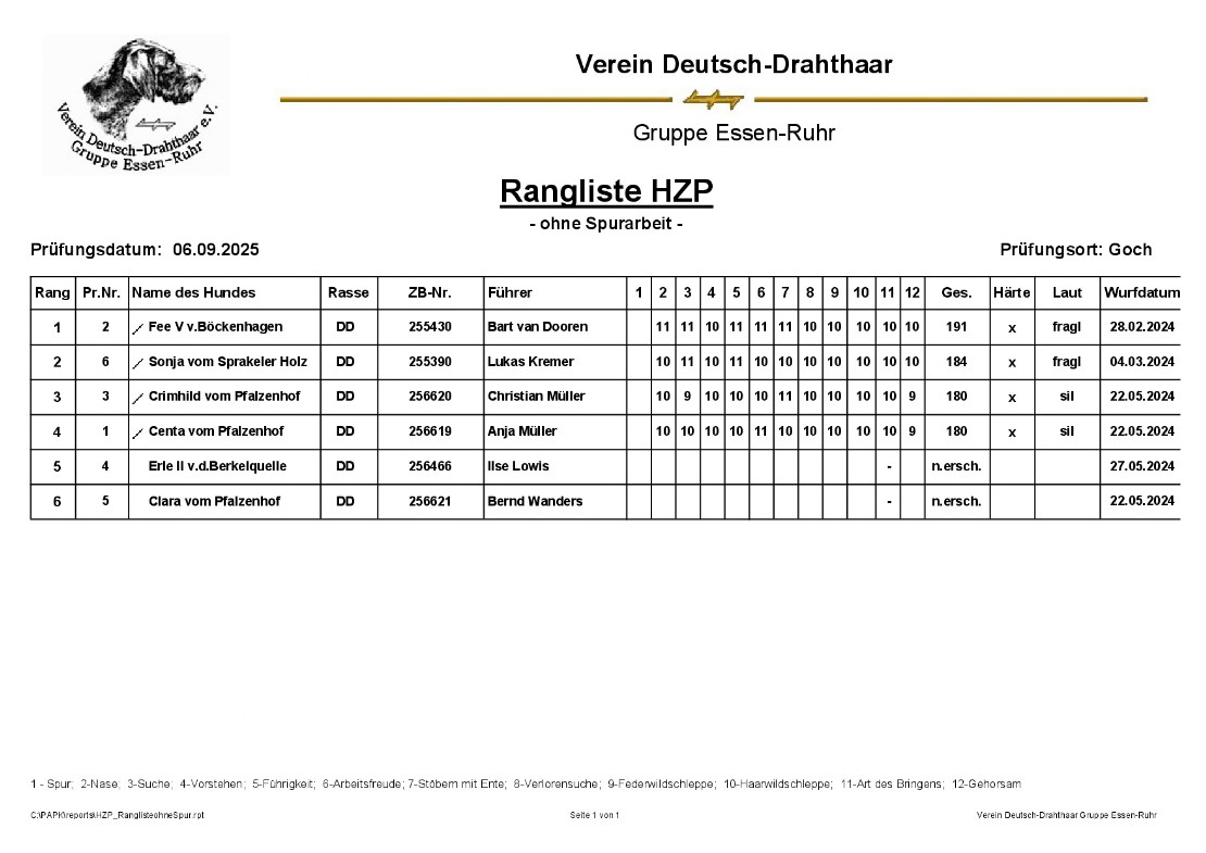 Am 21.09.2019 fand bei sonnigem Wetter die HZP o. Sp. mit Brauchbarkeit NW in Goch statt. Alle sieben Suchengespanne konnte die Prüfung erfolgreich bestehen.